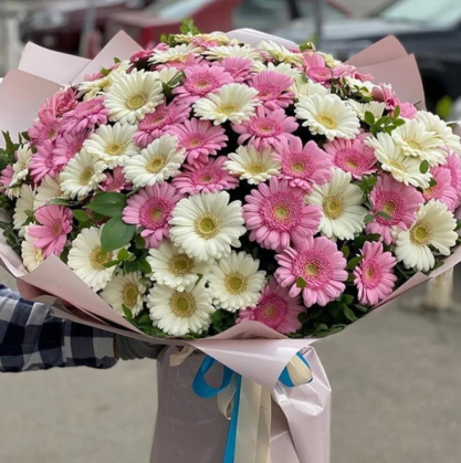 Букет из 101 белой и розовой герберой | Купить в Сен-Тропе